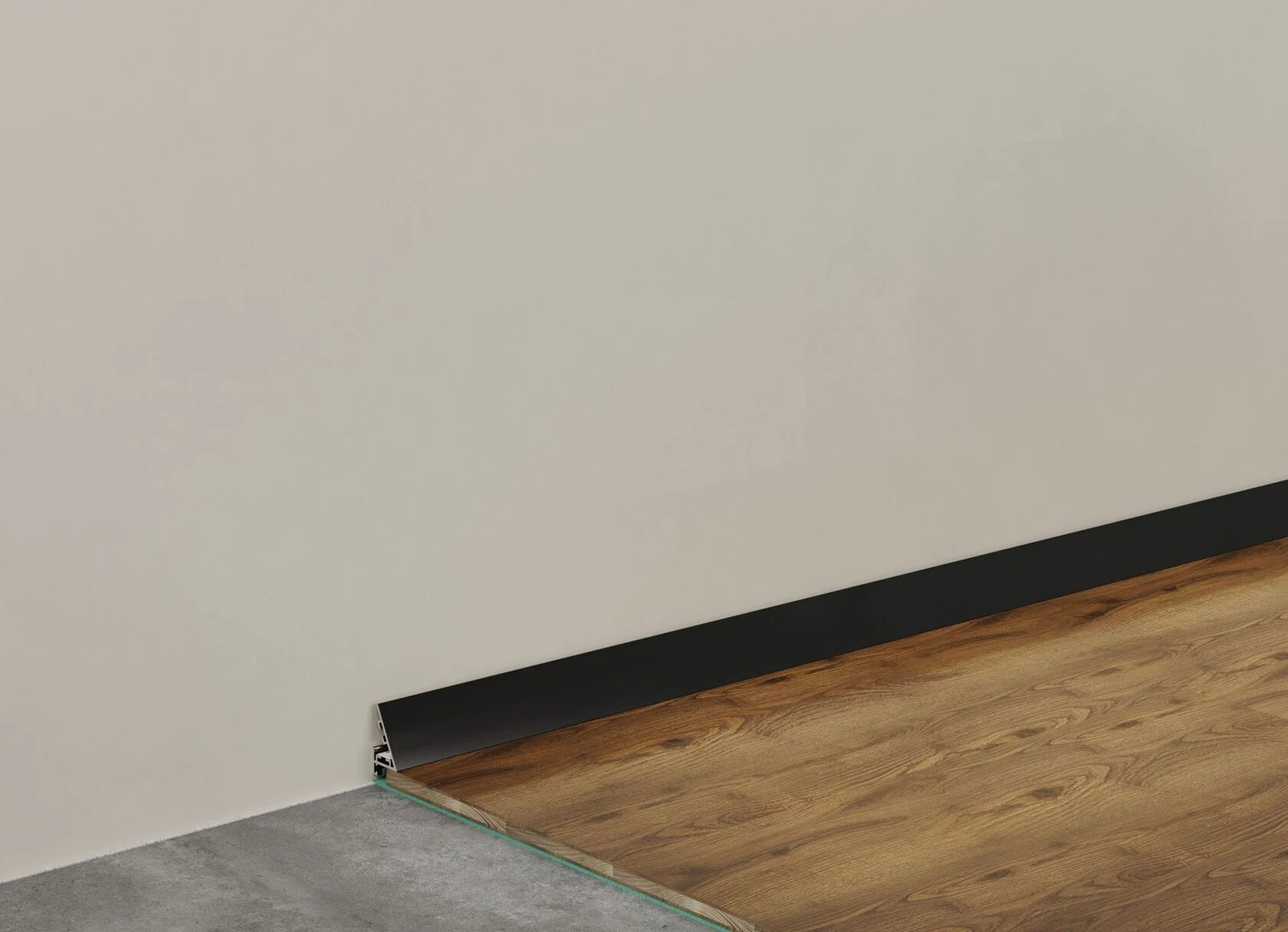 В интерьере микроплинтус выглядит как аккуратная, едва заметная линия, которая маскирует компенсационный зазор между стеной и напольным покрытием. Его главное преимущество — возможность установки после завершения всех отделочных работ и укладки пола. Это позволяет создать минималистичный интерьер даже в тех случаях, когда в проекте был предусмотрен классический плинтус.