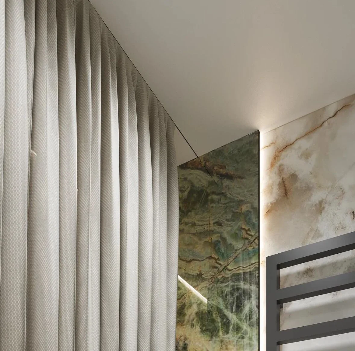 Отсутствие лишних деталей делает пространство более чистым и упорядоченным, а мягкие складки ткани становятся главным акцентом. Профиль идеально вписывается в интерьеры с акцентом на эстетику и минимализм, гармонично дополняя архитектуру пространства.