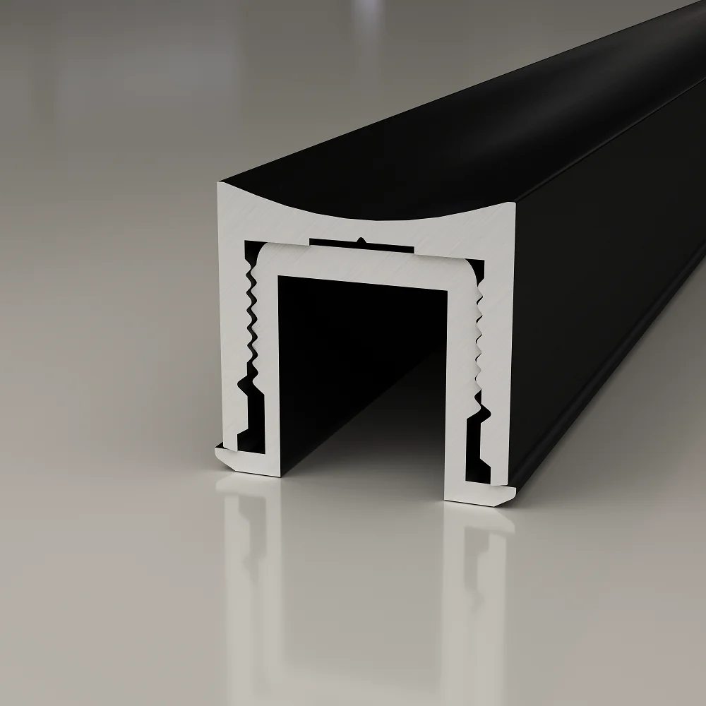 В комплект входит монтажная вставка FLEX, уже заправленная в профиль, что упрощает установку и обеспечивает ровный, чистый результат.