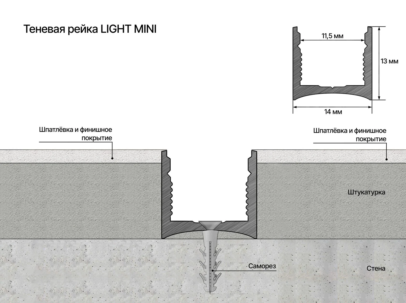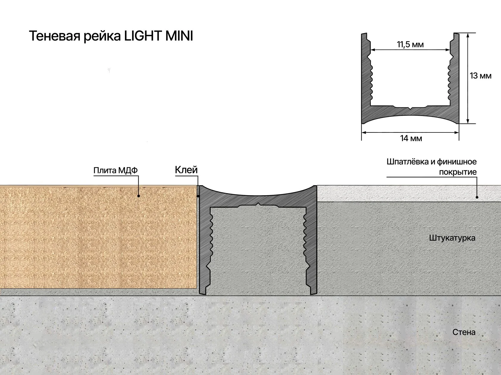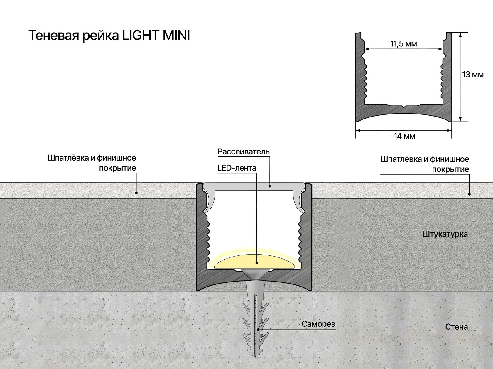 TENEVOI РЕЙКА LIGHT mini ПОД ПОДСВЕТКУ для обоев, панелей, керамогранита