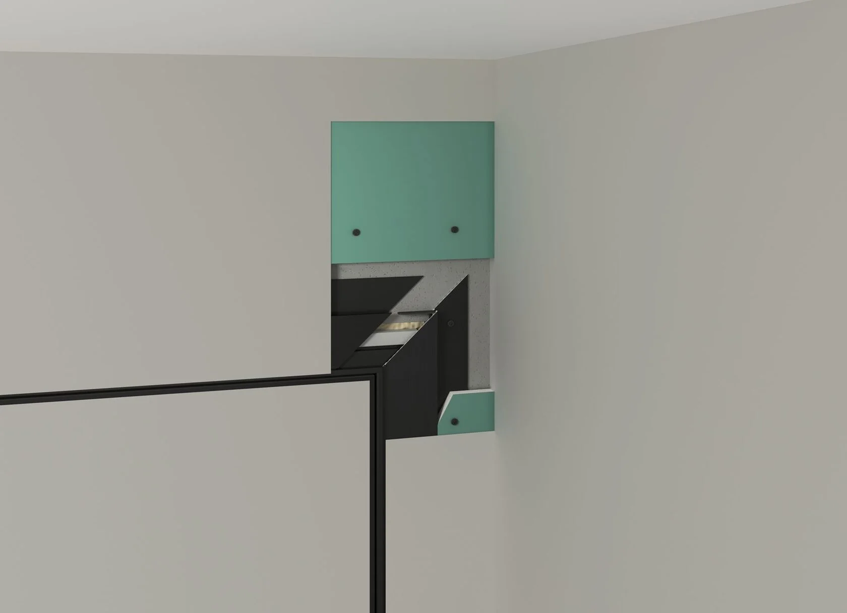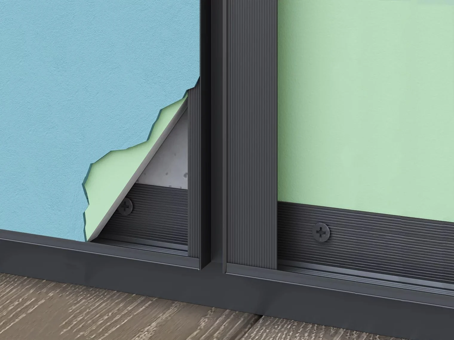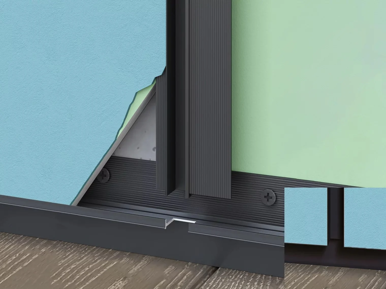 Этот профиль создаёт разрывное соединение между стеной и коробом двери скрытого монтажа (Invisible), благодаря чему конструкция короба становится независимой от поверхности стены. Такое решение предотвращает передачу вибрации на штукатурку и финишное покрытие — исключая риск появления трещин. Острый штукатурный маячок профиля обеспечивает ровное и аккуратное примыкание шпаклёвки.