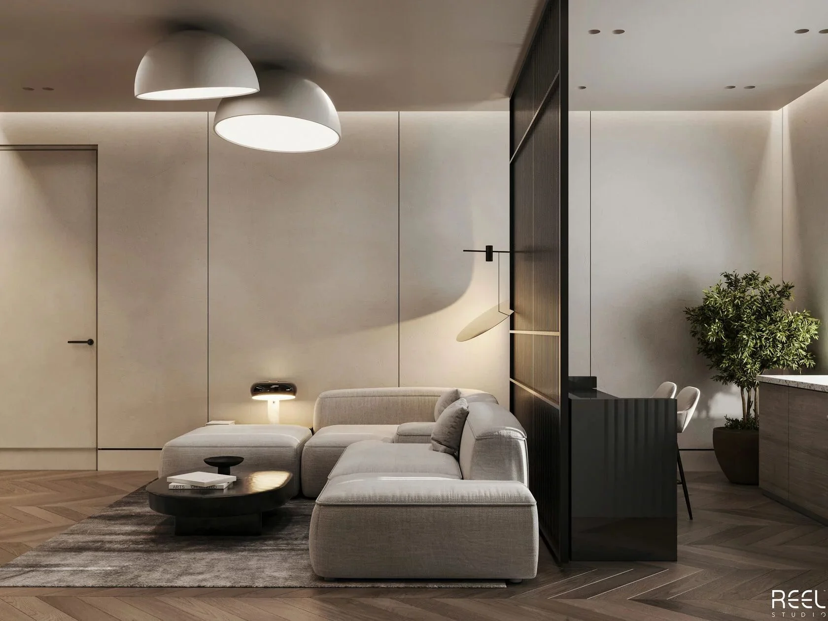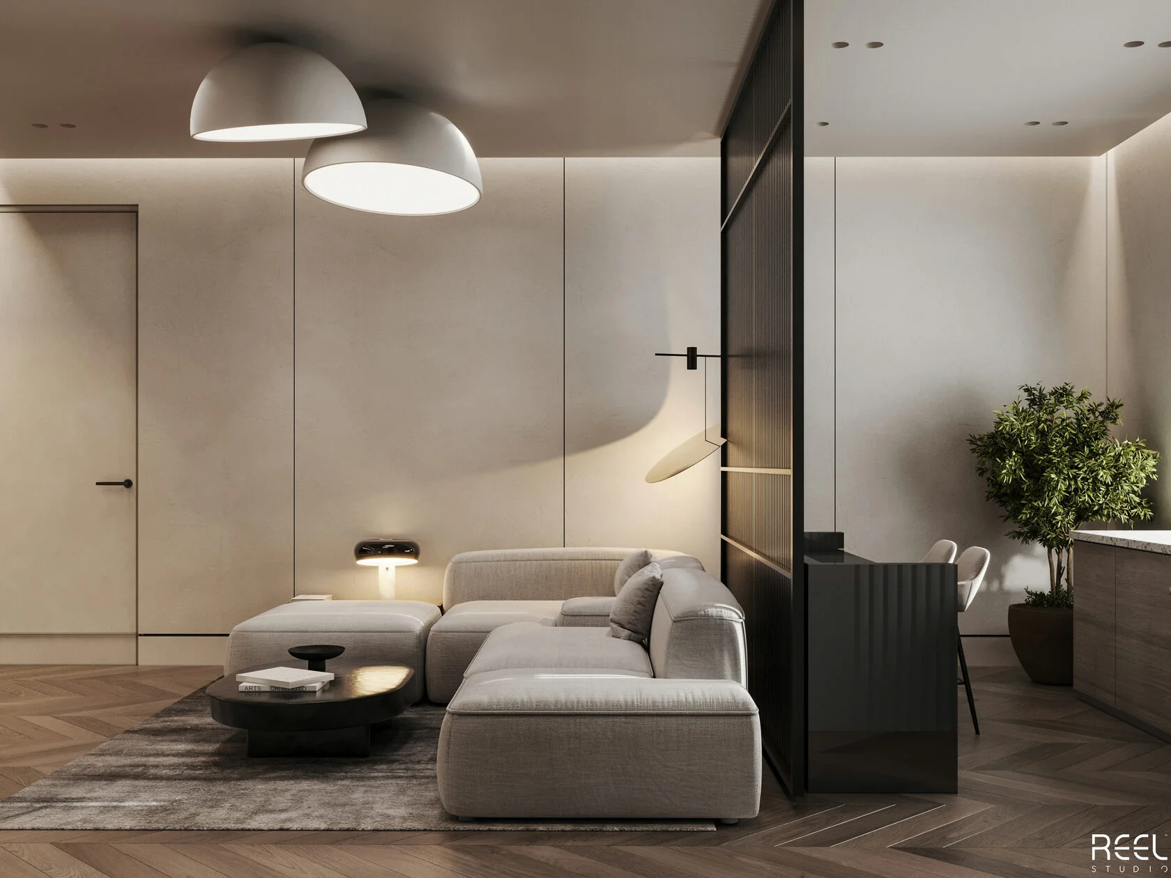 Профиль формирует теневой шов глубиной 5 или 6 мм, который добавляет интерьеру глубину и подчёркивает чистоту переходов между различными покрытиями. Теневая рейка DUAL идеально сочетается с теневым плинтусом, формируя единую и продуманную концепцию современного минималистичного интерьера.