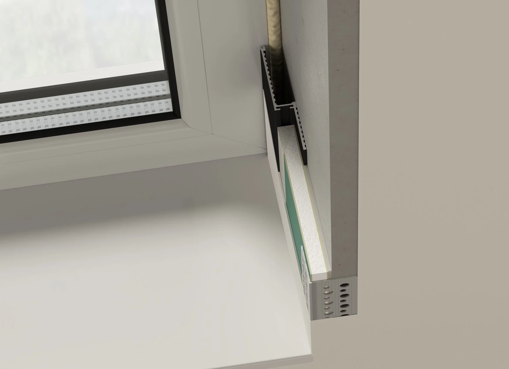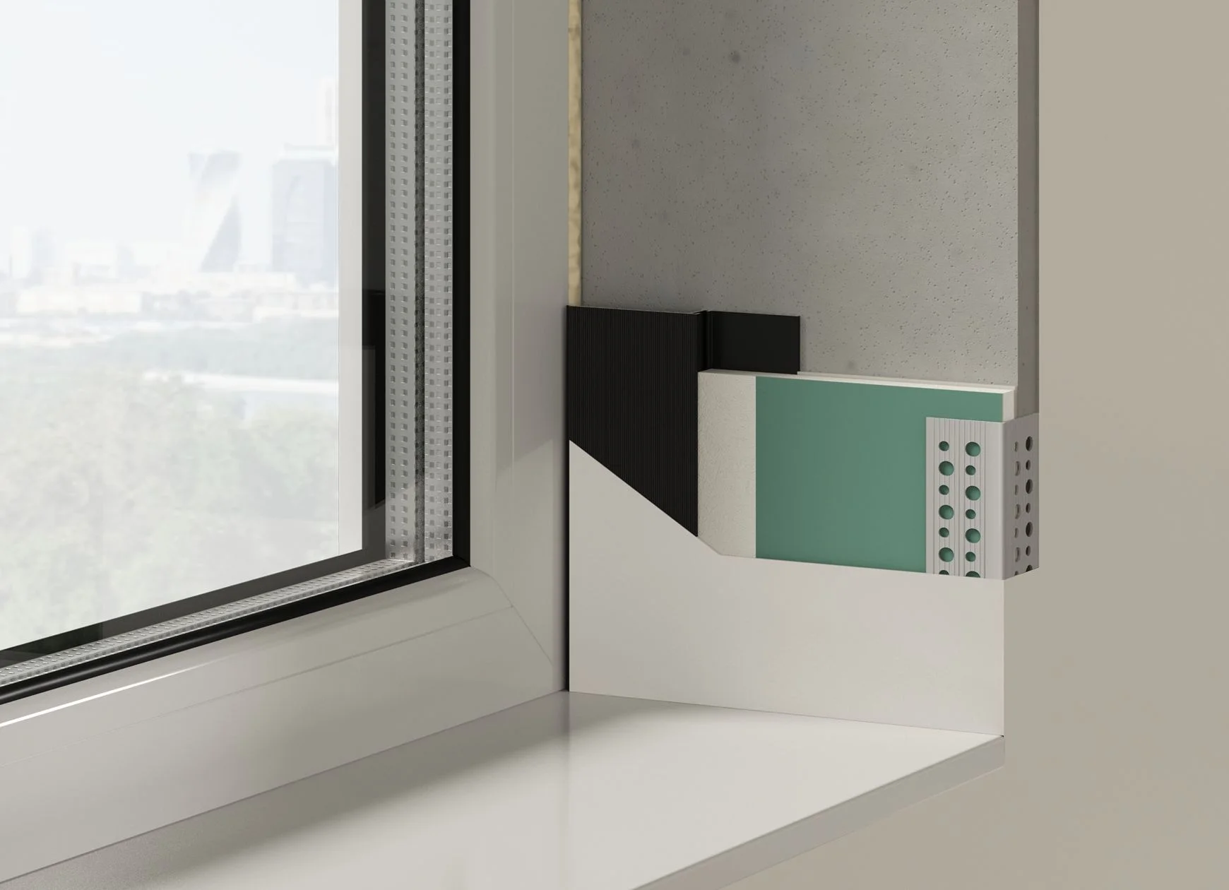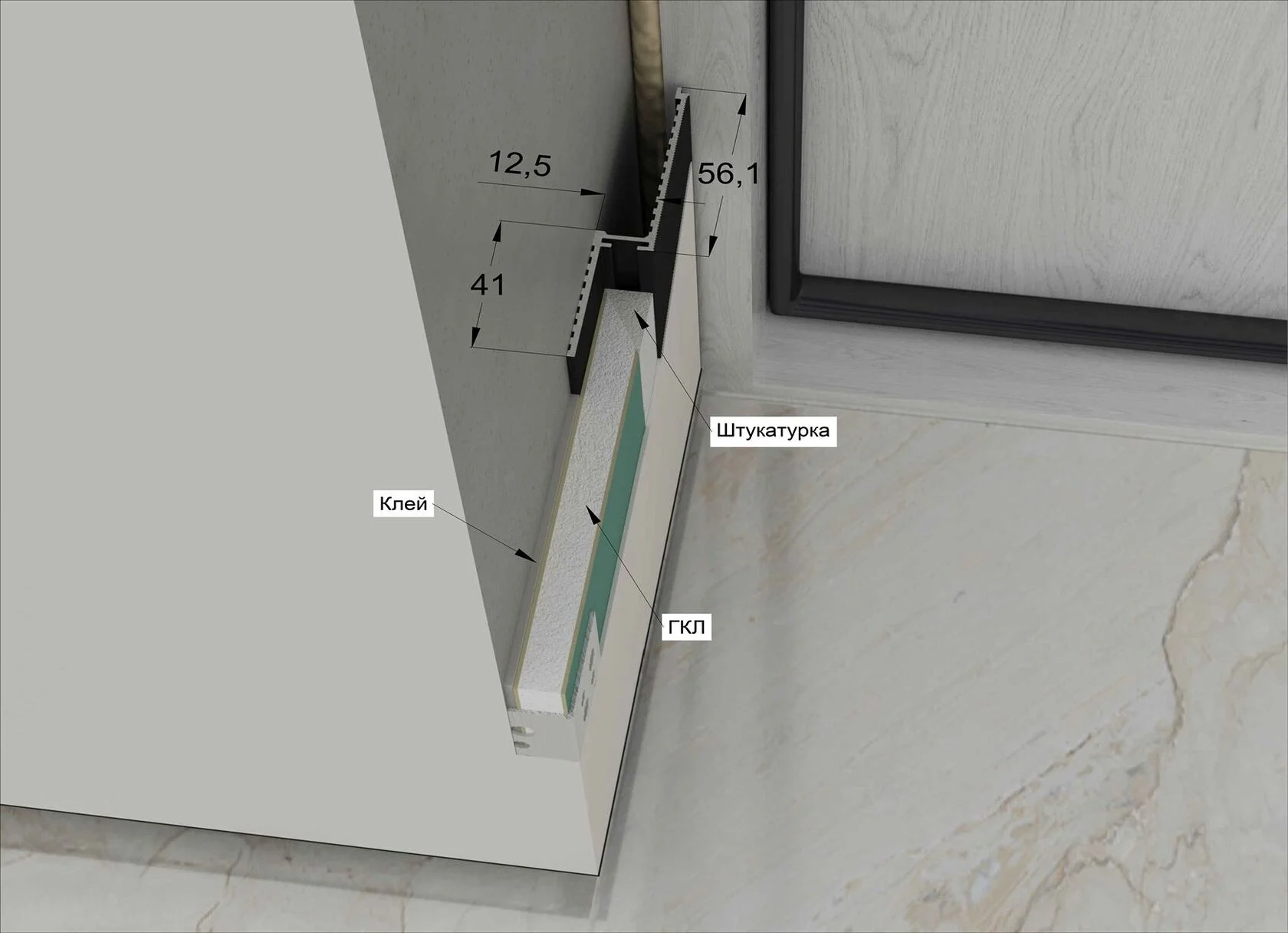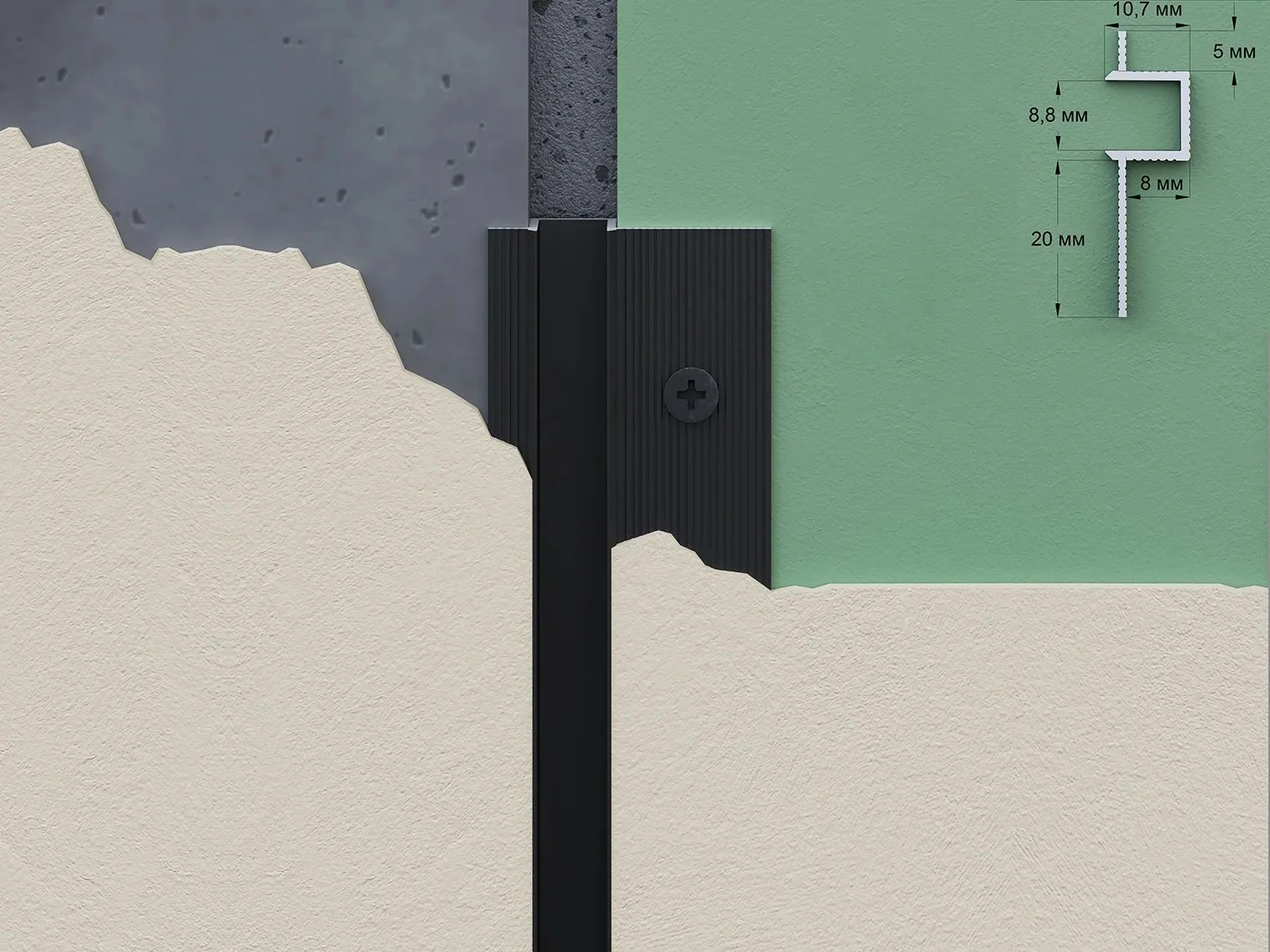Профиль устанавливается под штукатурку с последующей финишной отделкой. В комплект входит монтажная вставка FLEX, уже заправленная в профиль, что упрощает монтаж и обеспечивает ровный и чистый результат.